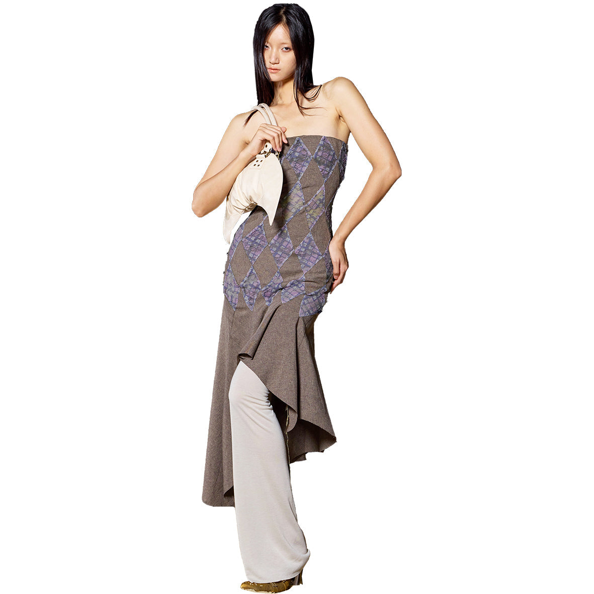 Plaid Puff Chiffon Asymmetrical Dress Aristo
