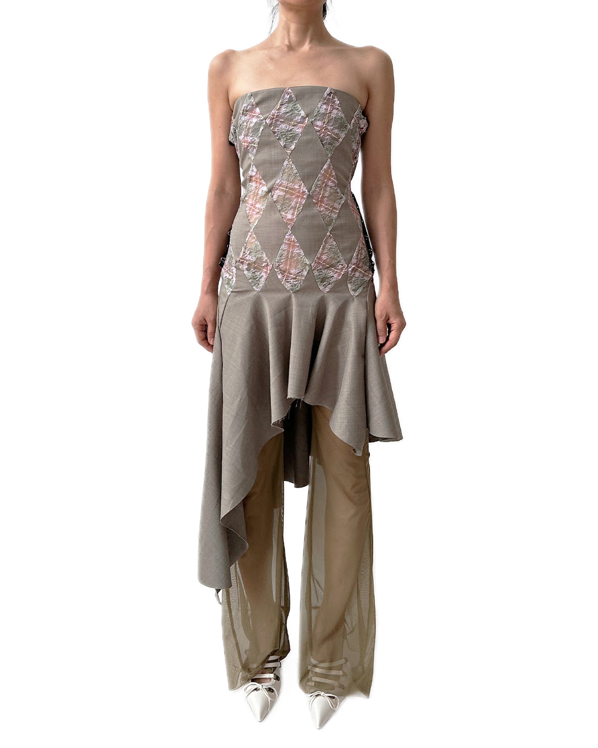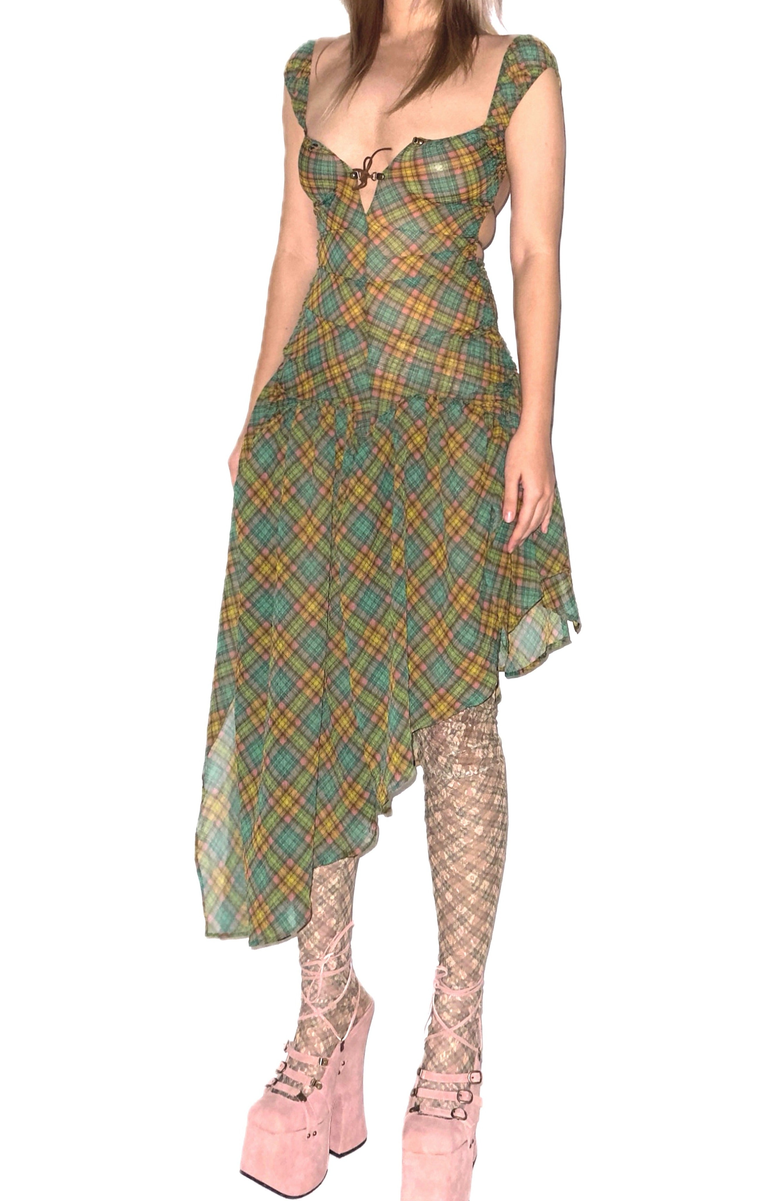 Plaid Puff Chiffon Asymmetrical Dress Hakuto Tartan