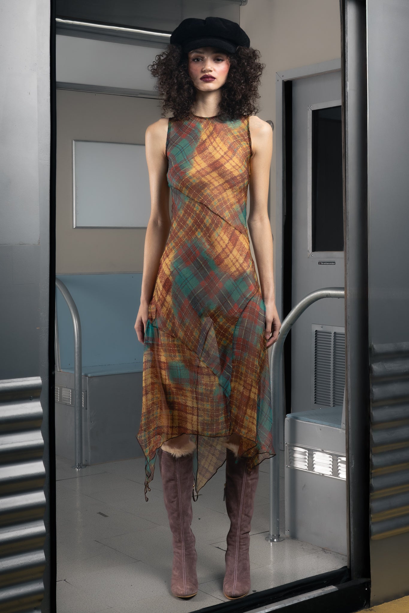 Sunset Silk Plaid Dress