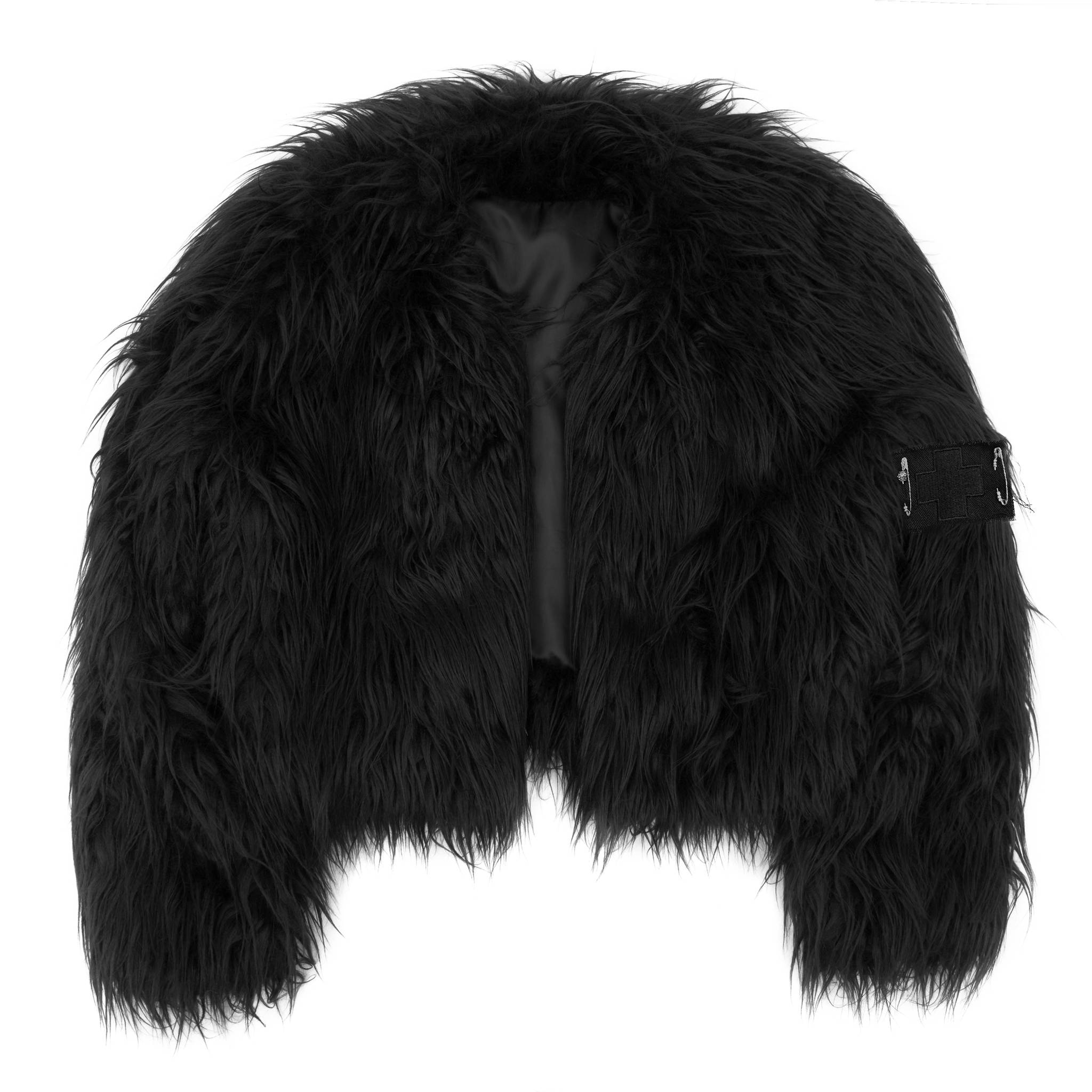 Fur Jacket with Army Patch in Black
